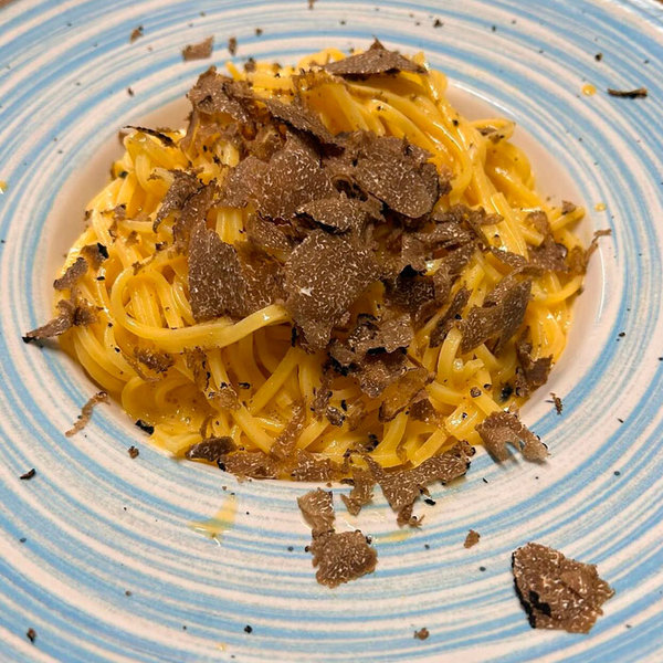 Tra le specialità di Osteria Il Barbagianni gli Antipasti Toscani con salumi del Triglia, la Trippa fritta, la Tartare di manzo, i Pici al ragù bianco di baccalà, il Fritto mista dell'aia, il Galletto al mattone.